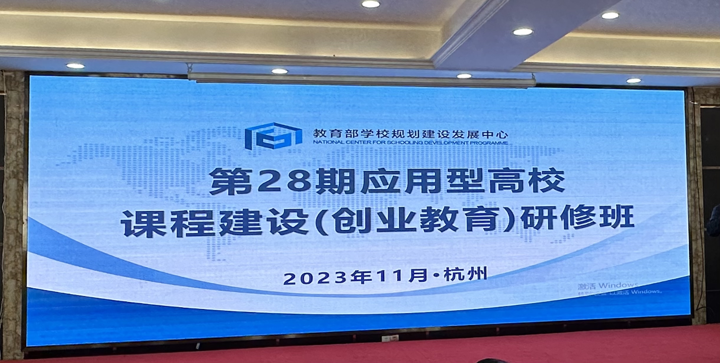 2023年11月23月至24日,由教育部学校规划建设发展中心主办,应用型课程建设联盟承办的第二十八期应用型高校课程建设(创业教育)研修班在杭州举办,来自全国30多所高校近百名高校创新创业教育工作者参加研修活动。我院选派4名教师代表参加此次培训活动,并应邀在会上做交流发言。