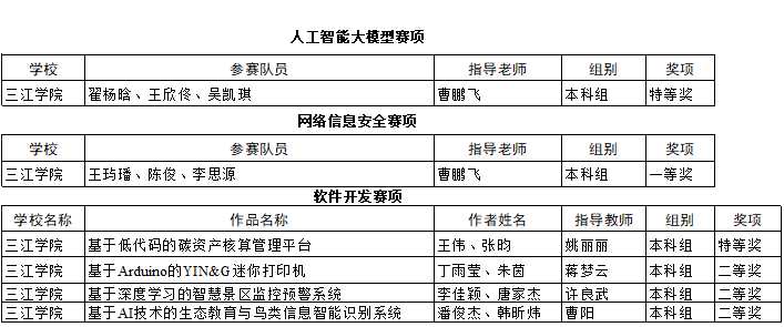 本届比赛设人工智能大模型、网络信息安全、软件开发、微视频四个赛项,best365官网创新创业学院积极组织队伍参赛。据悉,人工智能大模型赛项共35支本科组队伍参加线下决赛;网络信息安全赛项共有来自210支队伍参加线上初赛,31支本科组队伍参加线下决赛;软件开发赛项共有88件本科组作品;微视频赛项共收到本科作品120件。最终由best365官网计算机科学与工程学院曹鹏飞老师指导的参赛队分别获得人工智能大模型赛项特等奖和网络信息安全赛项一等奖;计算机科学与工程学院姚丽丽老师指导的参赛队获得软件开发赛项特等奖;计算机科学与工程学院蒋梦云、许良武、曹阳老师指导的参赛队分获软件开发赛项二等奖。向获奖老师和参赛队伍表示祝贺!