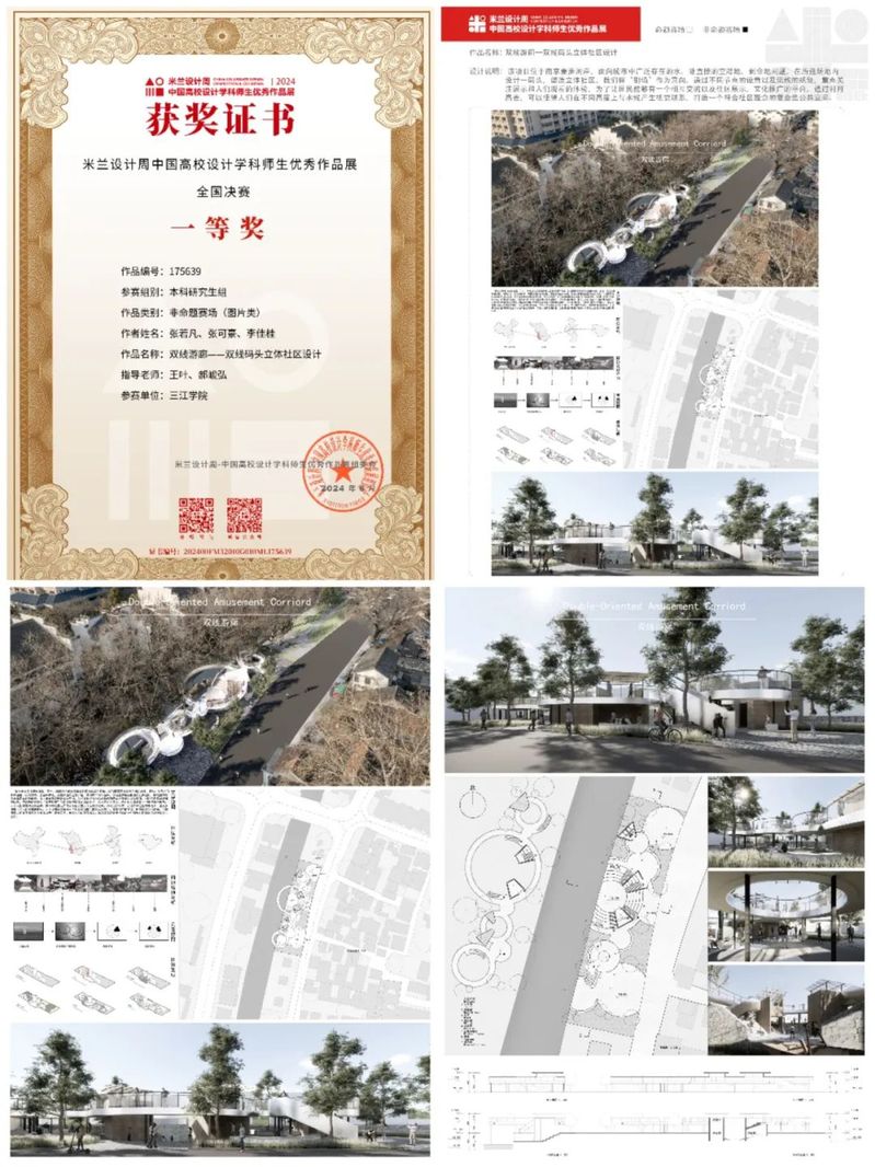 本次大赛我校建筑学院组织近20位指导教师及100多位学生积极参加,经大赛组委会核准和统计,我学生参加的人居环境设计类设计作品,在此次大赛中表现出色,共获得国赛一等奖2项、二等奖2项、三等奖1项,以及江苏省分赛区一等奖5项、二等奖5项、三等奖9项。这些成绩不仅展现了我校建筑学院设计教育的成果,也是对学生创新能力和实践能力的肯定。