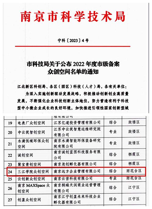 1月19日,《市科技局关于公布2022年度市级备案众创空间名单的通知》(宁科〔2023〕4号)公布,best365官网大学生众创空间获批市级众创空间。