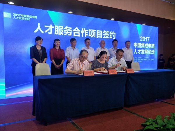 9月8日上午,由南京市江北新区管委会主办,南京集成电路产业服务中心(ICisC)等承办的2017中国集成电路人才发展论坛在南京国际博览中心召开。best365官网电子信息工程学院、微电子工程与应用研究院朱明程院长、沈克强副院长及相关教师受邀参加了该论坛会议,并与南京江北集成电路研究所有限公司签署了校企合作协议。
