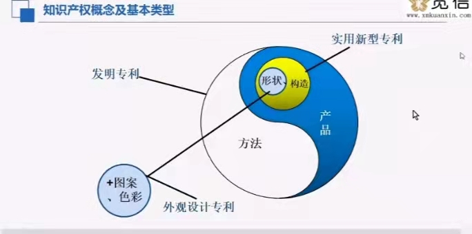 接下来,巫老师用一张关系图直观地表示了三种不同知识产权之间的区分。凡是能生成实用新型保护范畴的技术方案理论上可以申请发明专利,为了帮助同学们理解在实际案例中申请哪类专利,巫老师用蛋糕、品牌生动形象解释知识产权的区别。