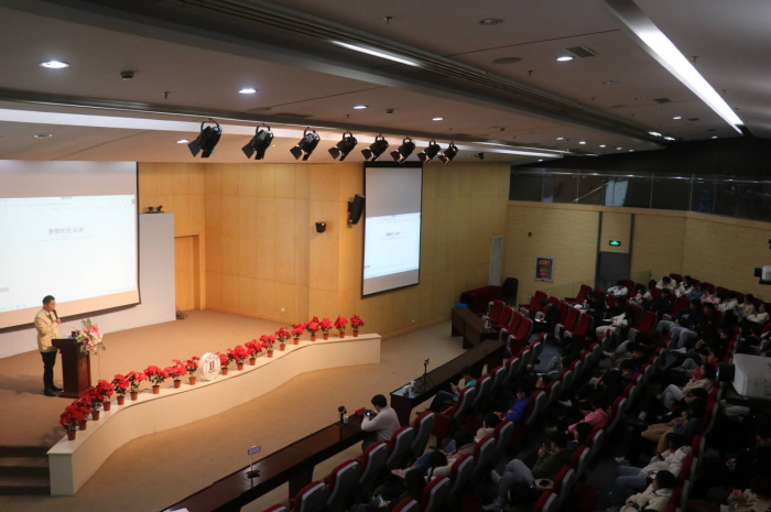 紧接着,子涵老师用几个"时代"为背景讲述了自己的进步轨迹——追逐、认识、浑噩、光明、崛起、创业、收获。警醒同学们在创业的过程中,艰辛和曲折是不可避免的,但找到自己喜欢的,并且坚持地并为之探索,直到发现新的机遇,而在历经了迷茫、浑噩、艰难后,熬过去,将会迎来光明!