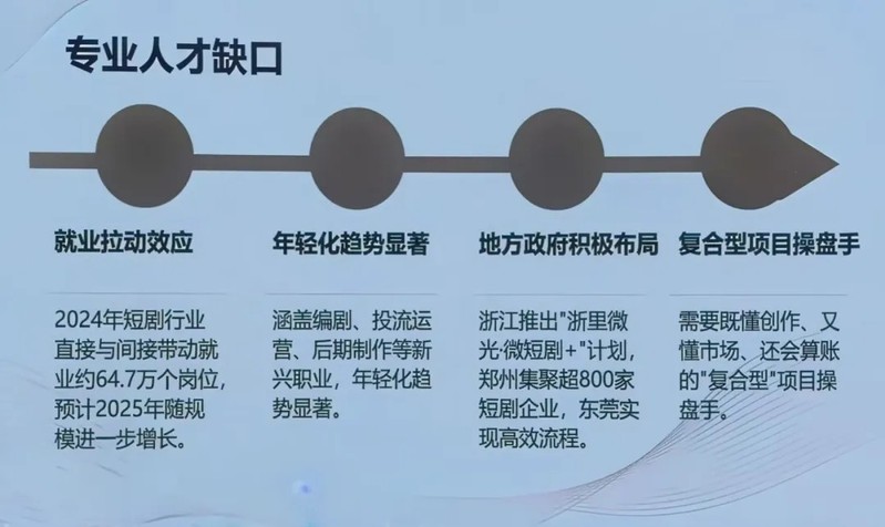• 人才需求多元化:行业的爆发式增长催生了对编剧、运营、投流、制片等全方位的复合型人才的需求,为同学们提供了全新的职业规划方向。