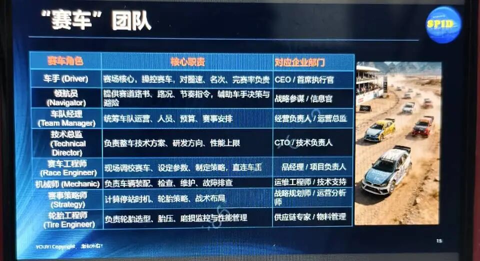 讲座伊始,游逸老师以热门电影《飞驰人生3》为切入点,结合赛车团队各角色的核心职责与企业对应部门的职能匹配,用生动鲜活的案例引出创新的本质与价值。