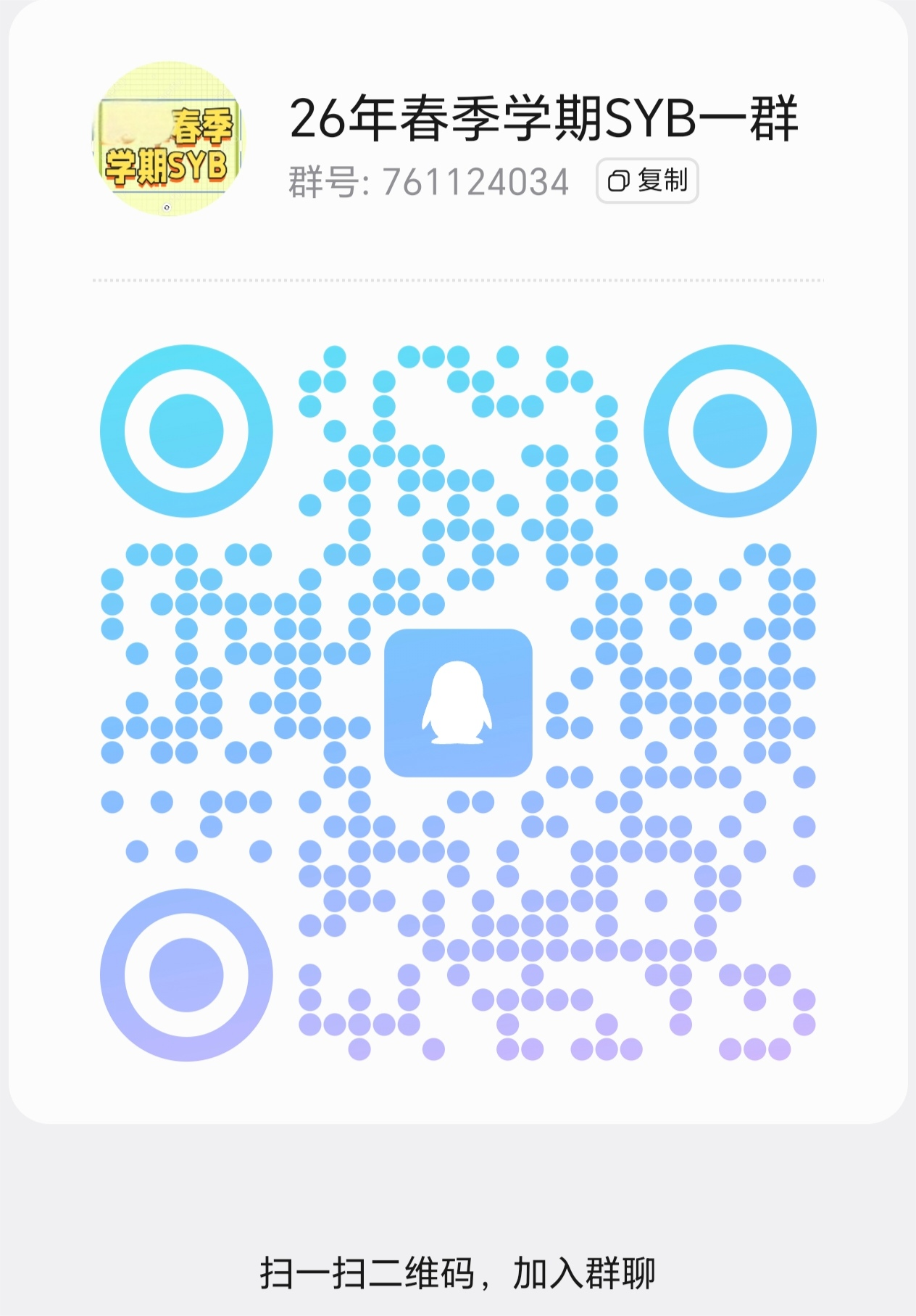 2.报名SYB加入QQ群,群(761124034