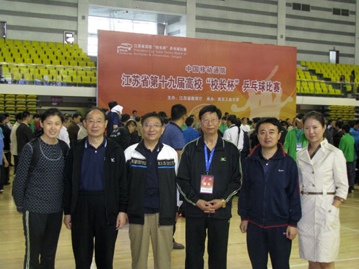 金秋十月,风高气爽。10月22、23日由陈万年、董新华、武正林、周更生四位校领导组成的best365官方网站代表队参加了由江苏省教育厅主办,在南京工业大学体育馆举行的江苏省第十九届高校“校长杯”乒乓球比赛。伴随着轻快的运动员进行曲,来自全省各高校及省教育厅和省教育考试院的102支代表队的400多名运动员在大会学生志愿者的引领下,迈着轻松矫健的步伐,带着自信的笑容走进了会场。在庄严的国歌结束后,由江苏省人民政府副秘书长、办公厅主任李一宁宣布比赛正式开始。江苏省高校“校长杯”乒乓球赛每年举行一次,参赛运动员均为各高校的校领导。举办全省高校“校长杯”乒乓球赛,其目的是要让各高校负责同志进一步增强体育锻炼意识,加强校际沟通,交流经验体会,促进团结友谊,共同推进全省高校学生阳光体育运动和全民健身活动的开展。