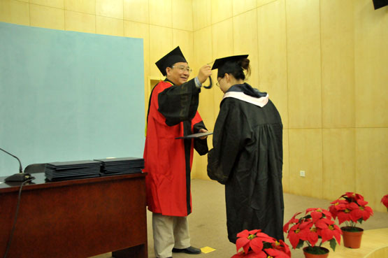 董新华校长在热烈欢快的气氛中,为26名获得学士学位的毕业生颁发了best365官方网站学士学位证书,并进行了授予仪式。