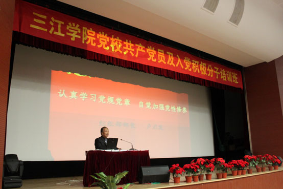 本期培训共安排了8个专题:党委组织部部长卢启发——认真学习党规党章、自觉加强党性修养;党委学生工作部部长朱银亮——共产党员与学风、校风建设;团委书记屈伯俊——党的领导与团学工作的开展;学生公寓党总支书记周学军——共产党员与学生公寓文明建设;文化产业与旅游管理学院党总支副书记沈逸君——奋斗在复兴的征程上;国际教育学院党总支副书记李佳——凝聚在信仰的旗帜下;党委组织部许晓——《实用教材》和党建若干规定辅导;观看电影《建党伟业》等专题教育活动。除采取专题讲座、课堂教学外,还通过学员自学、小组讨论、撰写学习心得、观看党的历史影片、结业考试等相结合的形式进行。