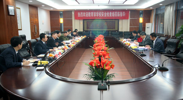 11月14日下午,由山东省教育厅副巡视员刘士祥为组长,教育部发展规划司耿慧娟、中国政法大学保卫处处长林发军、辽宁省教育厅发展规划处处长隋志成为组员的教育部学校安全检查组在省教育厅副巡视员步锦昆、省教育厅安稳处处长魏赞荣、省教育厅安稳处副处长张虎成等领导的陪同下,来best365官网检查指导学校安全工作。