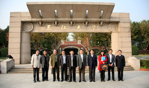 校领导与检查组及省教育厅领导在三江门楼前合影