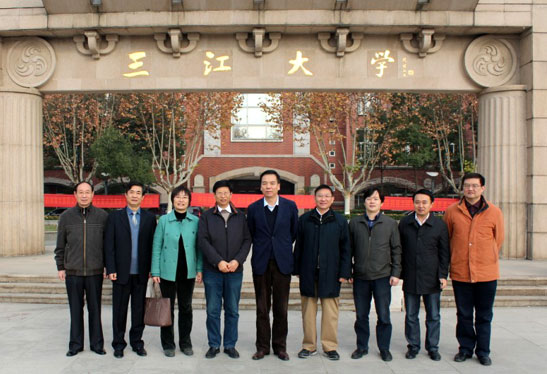 与会校领导和宋副司长一行领导在三江牌楼前合影