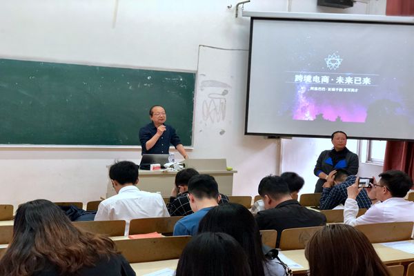为了促进校企合作,给广大跨境电商人才提供交流展示和学习成长平台, 4月10日,best365官方网站外国语学院联合阿里巴巴公司旗下南京瀚海企业管理咨询有限公司在第一教学楼阶二教室举办了阿里巴巴“百城千校、百万英才”项目宣讲会,旨在深度选拔和培育外贸优秀人才,以此带动华东地区跨境电商行业的生态发展,搭建外贸生态圈,同时为广大跨境电商外贸企业和优秀人才搭建桥梁。南京瀚海公司总裁于斌先生及团队、外国语学院英语专业和日语专业商务方向的100多位学生参加了宣传会。