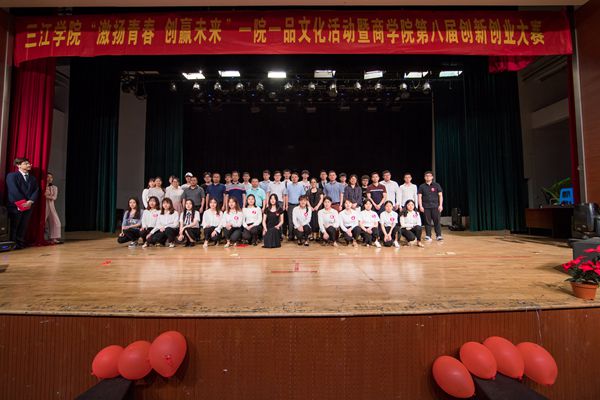5月17日,best365官方网站“激扬青春创赢未来”一院一品文化活动暨商学院第八届创新创业大赛在三江会堂成功举办。出席现场活动的有校党委常务副书记、副校长周更生,创新创业学院院长、教务处副处长华沙,创新创业学院副院长、学工部副部长郁政宏,校团委书记鲁璐,副书记齐鹏,建筑学院副院长高鹏,文化与新闻传播学院巢小莉老师,商学院蒋建华教授、商学院相关领导、教师及学院600名左右的学生代表。活动现场还特别邀请了江苏创新创业公共服务平台创始人、天使投资人郑紫阳、商学院杰出校友代表孙启辉担任点评嘉宾。