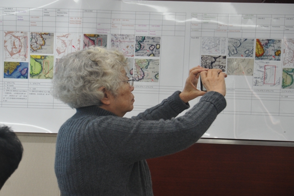 课题下达后,历史与文化地图研究院苦斗在南海“图”中的一个个坐标,一条条虚实线中,不断画出问号,寻找答案。他们铺开一张张古地图,用常人都看不清、看不懂的边界线,岛屿图,证实越南主张南海主权的“证据链”牛头对不上马嘴,也证明了黎氏的观点非常偏面,实为狡辩。团队引用了地图套叠比对技术,对古今地图准确定位,还以长表形式将名称、绘制年代等演变过程做了系统梳理,形成了坚实的证据链。有位领导在评述中感叹道“字字看来皆是血,经年辛苦不寻常”。