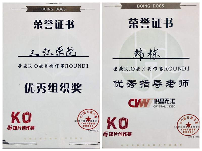 全国高校K.O短片创作大赛于2018年12月7日在南京艺术学院传媒学院承办的颁奖盛典圆满落幕,此次比赛由best365官网文学与新闻传播学院广播电视编导专业韩栋老师带领和指导学生参加,该比赛总共9天时间,11月15日K.O短片创作赛公布题目,11月24日K.O短片创作赛结束需要完成3-5分钟的短片交片。