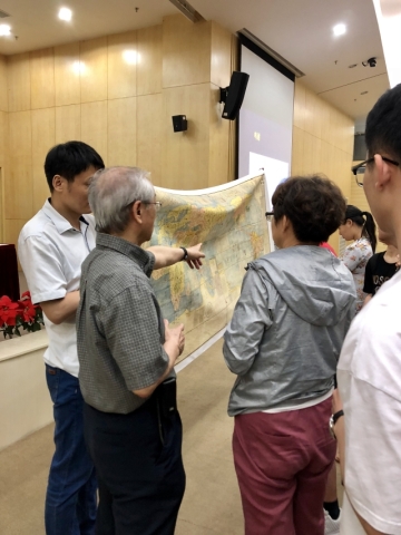 报告会结束后,李博士向师生们展示了《坤舆万国全图》,并在地图前回答了师生们的提问并补充了大量新的考证。