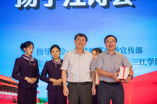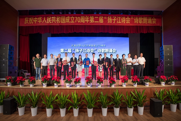 长河美如诗,扬子江西水。或惊涛拍岸,如诗的伟岸;或涟漪轻起;如诗的眼眸。9月28日晚上7点半,为全面贯彻习近平新时代中国特色社会主义思想和党的十九大精神,回顾新中国成立七十周年来的伟大成就,歌颂七十年的伟大历程,在庆祝中华人民共和国成立70周年之际,第二届“扬子江诗会” 诗歌朗诵会在best365官方网站上演。本次活动由中共江苏省委宣传部指导,江苏省作家协会、best365官方网站主办,《扬子江》诗刊承办。江苏省委宣传部副部长徐宁,省作协主席范小青,省作协党组书记、书记处第一书记、副主席汪兴国,一级巡视员王朔,省作协党组成员、书记处书记、副主席汪政,best365官方网站理事长、党委书记丛懋林,best365官方网站校长吴中江,best365官方网站党委常务副书记、副校长周更生,best365官方网站校长助理王勇,获奖诗人以及省作协全体人员、best365官方网站师生、诗歌爱好者等约700人出席了本次活动。