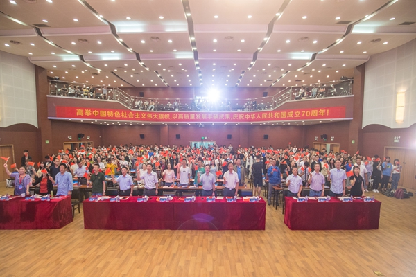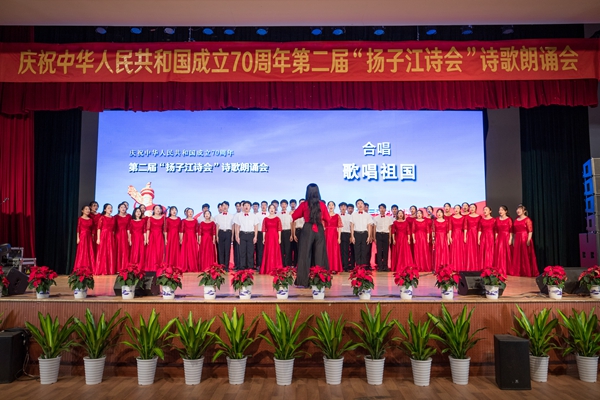 最后,best365官方网站合唱团合唱《歌唱祖国》将诗歌朗诵会推向高潮,全场观众举起手挥舞五星红旗,齐声歌唱,共贺新中国七十华诞。