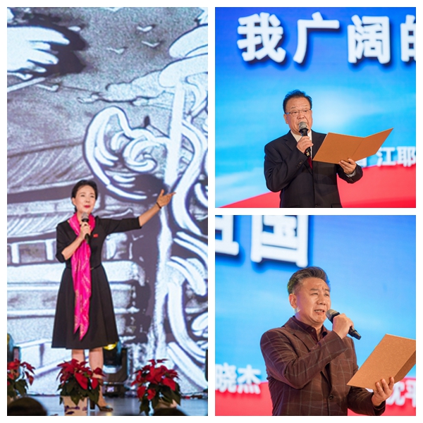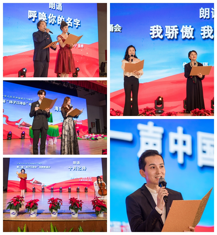 诗会第二篇章“我们都有一个家”缓缓奏起。原南京话剧团演员张黎明和江苏省广电集团新闻频率主播钱遇带来双人朗诵,用抑扬顿挫的朗读再度诠释了诗人李瑛的作品《我骄傲,我是一棵树》。“我是广阔田野的一部分,大自然的一部分,我和美是一个整体,不可分割;我属于人民,属于历史,我渴盼整个世界都作为我们共同的家园”!母女两代朗诵艺术家同台为我们朗读这篇充满献身精神的诗篇,让我们深刻体味到了祖国对我们一代又一代人倾尽深情的哺育。原南京广电集团主播陈宁、盐城市朗诵协会艺术顾问姜桦一齐朗诵了《呼唤你的名字》。“用十七个笔画,一笔一笔写你;写下你的横撇竖捺、点折勾提;读出你的风雨来往、生生不息”。大提琴独奏乐《Mother》悠扬而深沉的曲声,伴随着朗读者江苏省朗诵协会理事、盐城广播电视台主播吴瑛一声声“母亲”,使我们深陷在我们与祖国的浓情回忆之中。庞小伟的《十月之诗》浑然天成般地组合了玉米、大豆、土豆、红薯、花生、高粱等充斥着土地气息的意象。在这首诗里,我们的祖国母亲自然而朴素,在金色麦田里,在稻浪滚滚中,这是属于农民与土地的母亲,这是属于粮食与生命的母亲。古乐叮当、绿袖轻拂、红扇摇曳,在best365官方网站舞蹈团的轻快如风吹荷动的伴舞中,best365官网学生以青年学子的欢快轻盈朗诵了冯杰的作品《海棠叶上的中国》。江苏省广电集团新闻主播李杰用他醇厚而高亢嘹亮的嗓音,读出了王超的《今夜无眠,喊一声祖国》梦里思念的甜,颂出了祖国被胜利包围着的疆域与轮廓,喊出了意味深长的“我的祖国”。