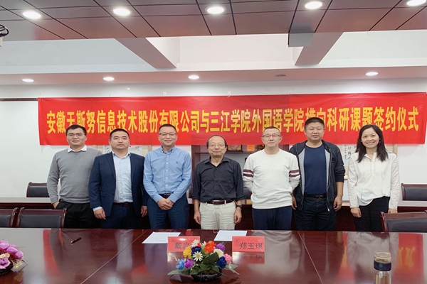 戴启龙董事长和郑玉琪院长分别在开发合同上签字,并祝贺项目成功启动。安徽天斯努信息技术股份有限公司成立于2012年9月;2013年成功研发并推出全球第一个自助云打印公共平台——“V印”平台,率先建立了以打印为入口的新型“互联网+打印”的商业发展模式;2017年云打印终端设备被评为“高新技术产品”。此次公司委托外院研发的课题为期二年,提供经费15万元。外院已组建了由刘江桥博士领衔、英语和日语骨干教师组成的专项课题组,力争在规定的时间内高质量完成云打印服务英语和日语语料库建设,为公司的国际化进程做出贡献。技术开发合同的签署充分证明了公司对外院科研能力和外语水平的高度认可。