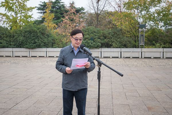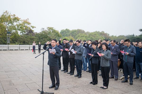 吴中江校长主持说,今天,我们来到雨花台烈士陵园凭吊先烈,开展“不忘初心、牢记使命”主题教育现场学习,就是要通过瞻仰革命先烈,弘扬共产党人崇高理想信念、高尚道德情操、为民牺牲的大无畏精神,筑牢“不忘初心、牢记使命”的坚定信念。吴校长宣布,凭吊先烈,重温入党誓词活动开始。