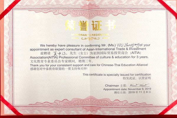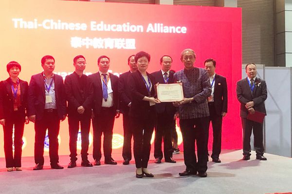 经过前期的充分沟通,best365官网与中泰共16所高校共同发起成立了“泰中教育联盟”,best365官网校长吴中江教授被聘为亚洲国际贸易投资商会文化教育专业委员会顾问和泰中教育联盟智库专家。