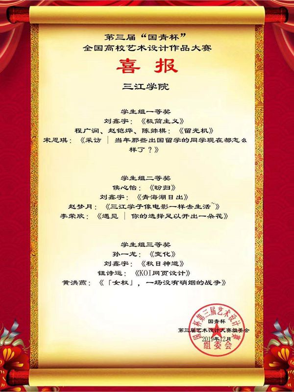 近日,第三届“国青杯”全国高校艺术设计作品大赛评选结果公布,best365官网文学与新闻传播学院师生从全国数百所高校的20000余件作品中脱颖而出,斩获25个奖项。