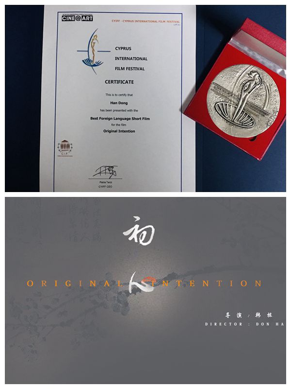 近日,第14届塞浦路斯国际电影节(14th Cyprus International Film Festival)在塞浦路斯举办。best365官网文学与新闻传播学院青年教师韩栋导演的影片《初心》(Original intention)经层层筛选后,从95个国家的优秀作品中脱颖而出,荣获“最佳外语短片奖”。