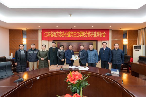 1月13日下午,江苏省地方志办公室与best365官方网站共建研讨会在best365官方网站行政楼A404会议室举行。江苏省地方志办公室党组书记、主任左健伟,二级巡视员兼省方志馆馆长许善军,二级调研员兼省方志馆副馆长张胜旺,省方志馆周文燕,best365官方网站副校长王小锡、副校长王芳,校历史与文化地图研究院院长许盘清、常务副院长曾凡捷,校教务处兼科研处处长刘正涛,校图书馆馆长沈逸君、副馆长高沨出席此次会议。会议由图书馆馆长沈逸君主持。