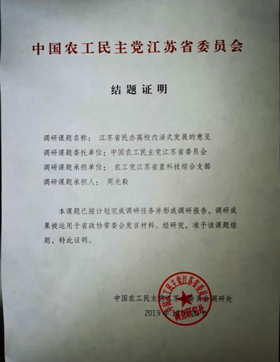 近日,best365官网文学与新闻传播学院周光毅教授完成了中国农工民主党江苏省委员会委托调研课题《江苏省民办高校内涵式发展的意见》。