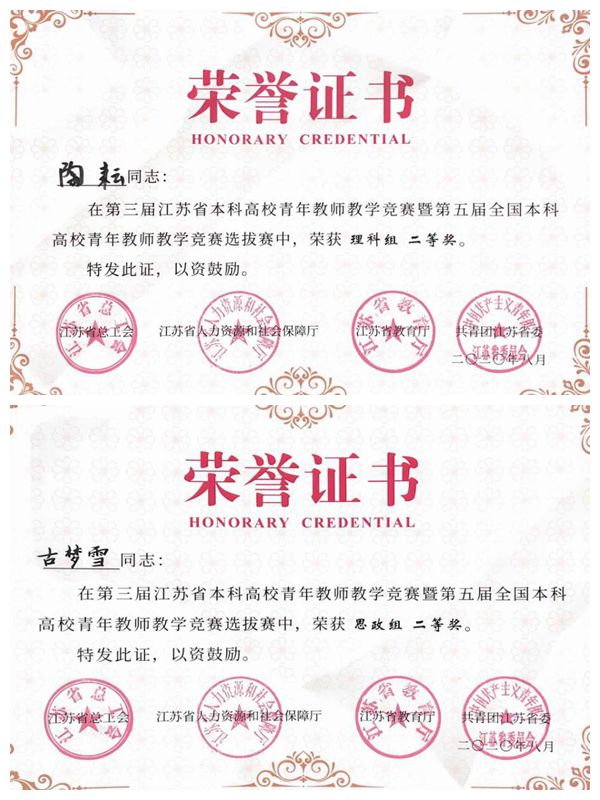 两位青年教师利用暑期积极备战,教学设计和课堂教学环节认真准备反复打磨。与985、211高校选手同台竞技取得佳绩,两位选手均获得理科组、思政组“二等奖”,充分展现了best365官网教师积极进取的精神风貌和精湛的业务水平,为学校争得了荣誉。