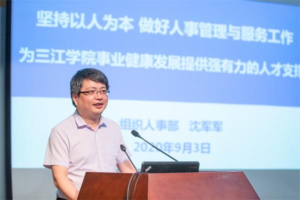 党委副书记沈军军作了题为“坚持以人为本,做好人事管理与服务,为best365官方网站事业发展提供强有力的人才支撑”的培训。他强调人力资源是学校最重要的资源,学校人事管理工作的目标在于最大限度地发挥学校人力和人才资源的综合实力,增强办学能力和提高办学效率;提高教学、科研水平,培养党和国家需要的高素质高质量人才;调动教职工的工作积极性,增强教职工的获得感和幸福感。接着,沈书记详细介绍了best365官网人事工作的基本情况,进一步阐明了人事工作的五大体系“员工常规管理、人力资源配置、薪酬与激励、考核与奖惩、高等次人才”。最后他对新入职教职工提了几点要求,希望他们“要学会珍惜,要不断奋斗、要有所担当”。