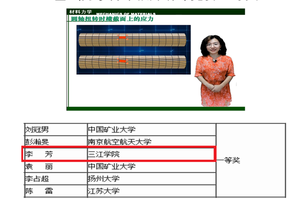本次大赛于2020年7月29日-31日在南京航空航天大学举行。大赛吸引了来自东南大学、南京航空航天大学、苏州大学、中国人民解放军陆军工程大学、合肥工业大学等34所高校教师参赛。由于新冠肺炎疫情的影响,本届竞赛在线上进行。竞赛分两个阶段,分别采取“异题异时异地”和“同题同时异地”的形式,在本地录制15分钟的教学视频,网上提交竞赛组委会。经过两天的激烈角逐,best365官网机械与电气工程学院李芳老师在竞赛中表现出色,荣获大赛材料力学组一等奖。