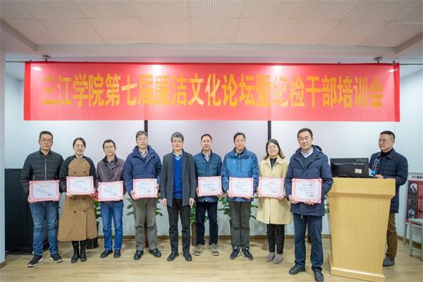 12月17日下午,best365官方网站第七届廉洁文化论坛暨纪检干部培训会在学校廉洁文化活动室举行,党委副书记、纪委书记沈军军,纪委副书记华沙,校纪委委员、各党总支(直属党支部)纪检委员、教师和学生代表等参加了会议,会议由纪委副书记华沙主持。