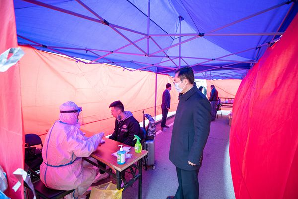 省教育厅二级巡视员李金泉实地查看大学生核酸检测现场