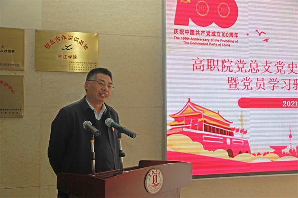 仇存进副校长总结讲话并宣布高职院党史学习教育正式启动。在讲话中,仇存进副校长对高职院师生党员提出了学习建议:学习要与个人实际紧密结合;在学习中领悟,学习中思考,学习中实践;能够把党史的学习与best365官方网站建校30年的历史学习做到有机结合,学党史与学校史相融合。