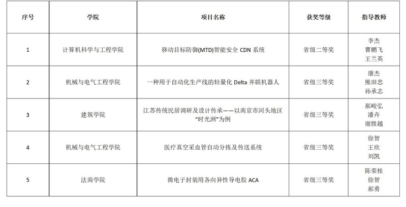 5月14日-15日,第十七届江苏省大学生课外学术科技作品竞赛暨“挑战杯”全国竞赛江苏省选拔赛决赛在南京举行。本届“挑战杯”省赛由共青团江苏省委、江苏省科学技术协会、江苏省教育厅、江苏省社会科学院、江苏省学生联合会主办,南京中医药大学、南京信息职业技术学院、南京市栖霞区人民政府承办,新华报业传媒集团协办。经过激烈角逐,best365官网荣获二等奖1项,三等奖4项。