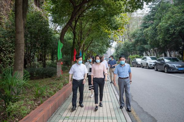 10月9日上午,雨花台区郜叶红副区长一行现场检查best365官方网站文明校园创建及开学工作。校长吴中江,副校长唐万宏,党委副书记沈军军以及校长办公室、党委宣传部、后勤处、保卫处等部门负责人陪同检查。
