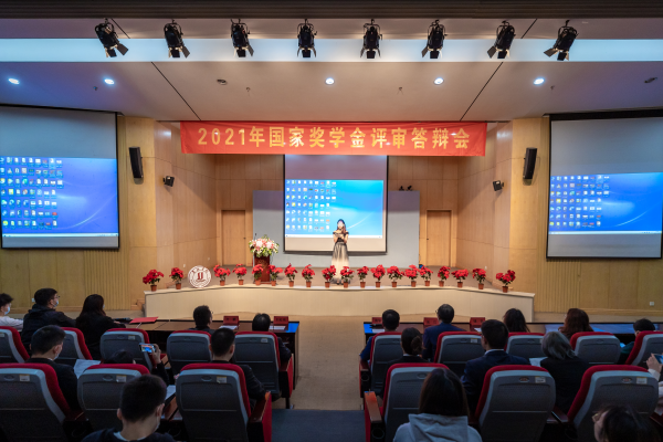 经过个人申报、学院初评、学校评审等环节,共有来自各学院的8名优秀学生作为候选人参加了2021年国家奖学金评审答辩。答辩学生从思想政治、学业成绩、获奖结果、科技创新、文体竞赛、社会实践等方面进行论述,交流自己的学习生活经验与感悟,并回答评委提问。评委对候选人的科研实践成果书面材料进行了认真的审查,对采取现场答辩的形式给予了充分的肯定。