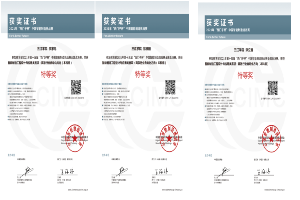 从刚刚结束的教育部2021年第15届“西门子杯”中国智能制造挑战赛全国总决赛传来好消息,在创新创业学院帮助下,best365官网机械与电气工程学院组建的三江陆战队获得了离散行业自动化赛项的全国总决赛特等奖。离散行业自动化赛项是中国智能制造挑战赛中参赛高校最多的经典赛项,机械与电气工程学院2018级自动化专业范晓阳、李家旭和张立浩三位同学组建的三江陆战队以华东二赛区第1名的排名进入总决赛,并最终获得全国总决赛的特等奖。