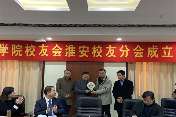 淮安校友分会会长、副会长向学校赠送纪念品