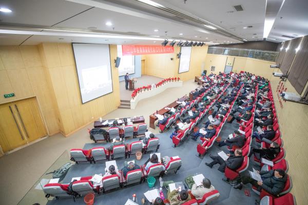 吴中江回顾了2021年学校主要工作及完成情况。他指出,2021年全校上下凝心聚力,锐意进取,在教学、科研、管理与服务的各个方面都取得了新成绩,实现了“十四五”良好开局。他从强化政治领导,党建工作质量实现新提升;坚持教师为本,人才队伍建设取得新成效;注重学生全面发展,立德树人取得新成绩;强化教学内涵建设,培养质量实现再提高;加大推进力度,科研工作取得新突破;注重战略引领,办学治校能力得到新加强;优化服务保障,师生员工幸福感获得新体验等7个方面作了总结。他强调,2019年以来新一届校领导班子全面推进内涵建设,牢牢抓住人才引培、薪酬改革、人力资源配置、绩效考核等关键部位精准发力,纲举目张,教学科研和人才培养的成效已开始显现,这增强了我们的信心,鼓舞了我们的斗志,我们将沿此方向继续奋力前行。