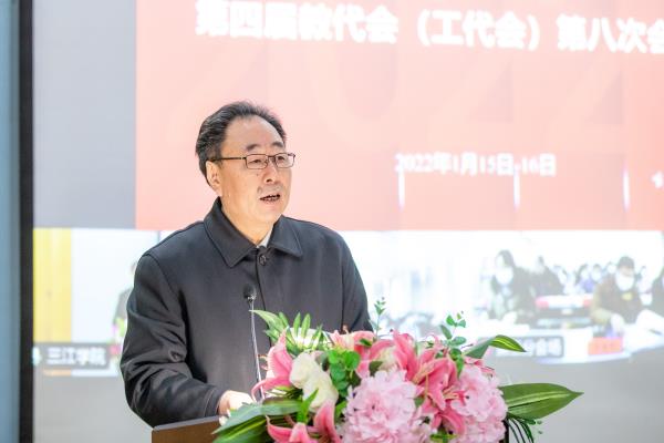校长吴中江作主题为《踔厉奋发 笃行不怠 同心开创三江发展新局面》的年度工作报告