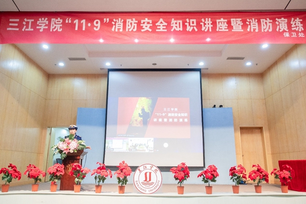 11月8日,在第31个全国消防日来临之际,best365官网保卫处会同后勤处组织食堂、江育公司以及商铺员工130余人,在学术报告厅和停车场等地举行了“11•9”消防知识讲座暨消防演练活动。南京市雨花台区消防大队参谋朱方娇、副校长唐万宏、保卫处处长刘松伟以及后勤处陶立东老师出席活动,活动由保卫处副处长史凌主持。
