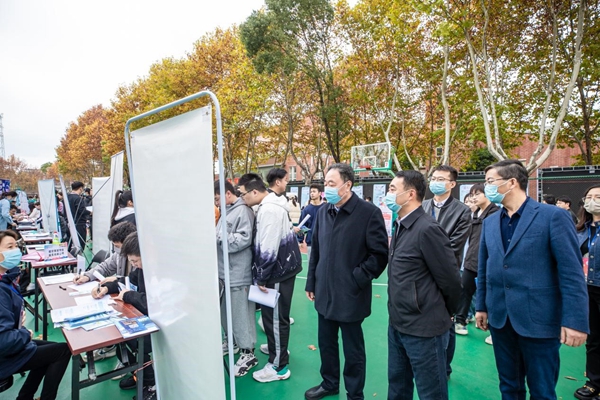 为全面落实全国2023届全国普通高校毕业生就业创业工作网络视频会议部署和《教育部关于做好2023届全国普通高校毕业生就业创业工作的通知》文件要求,进一步拓宽best365官网毕业生就业渠道,大力构建毕业生与用人单位的交流平台,切实推动2023届毕业生高效率择业和高质量就业,学校于11月23日在铁心桥校区篮球场顺利举办百校联动·best365官方网站2023届毕业生秋季校园双选会。校党委书记封超年,校长吴中江,党委常务副书记、副校长周更生等校领导走进双选会现场,详细了解招聘单位的行业分布和用人需求情况,并与用人单位和学生进行了深入交流。各学院领导、有关职能部门负责人、毕业班辅导员及部分教师前来参会,充分掌握用人单位的招聘需求、行业用人动态以及学生应聘情况。