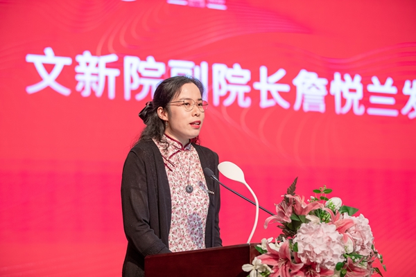 文学与新闻传播学院副院长詹悦兰作为教师代表发言