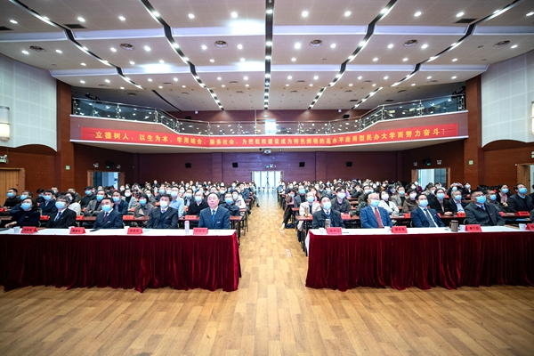 党委书记封超年在大会上发表讲话。他向关心支持学校事业发展的社会各界表示衷心感谢。他指出,面向未来,我们要把学习贯彻党的二十大精神作为首要政治任务,增强学习宣传贯彻党的二十大精神的政治自觉,深刻领会党的二十大精神的丰富内涵和精神实质,迅速兴起学习宣传贯彻党的二十大精神的热潮,用党的二十大精神统一思想、统一意志、统一行动,以更高的站位、更大的格局、更实的举措,推动党的二十大精神在学校落地生根、开花结果,实现学校事业高质量发展。他强调,面向未来,我们要进一步加强党的建设,坚定办学方向,主动对标对表中央及省委关于加强民办高校党建工作的部署要求,把抓好党建作为办学治校的基本功,坚持高起点谋划、高标准起步、高质量推进,以强化学校治理体系和治理能力为重点,以提升基层党组织的组织力为核心,以提高师生思想政治工作质量为抓手,以推进全面从严治党向纵深发展为保障,形成横到边、纵到底、全覆盖的党建工作新格局,把政治标准和政治要求贯彻到学校发展全过程,落实到教学、科研、管理等各方面,着力将党建优势转化为办学优势、将党建活力转化为办学动力、把党建成效转化为办学实效,以高质量党建助推学校事业高质量发展。他指出,面向未来,我们要进一步强化目标导向,实现持续发展,深入落实第五次党代会任务,全面实施“十四五”规划,着力抓好强基础、建特色、升层次“三大建设”任务,把建设特色鲜明的高水平应用型民办大学推向新的阶段。他强调,面向未来,我们要进一步推进改革创新,增强办学活力,要进一步增强改革的前瞻性、系统性,以深化改革破除体制机制障碍,以制度创新提升办学治校水平,要通过改革创新,着力转变发展方式、优化资源配置、强化组织协同,促进办学要素集约使用、基层组织办学活力竞相迸发、干部师生积极性充分发挥,不断增强促进发展的内驱动力。他指出,面向未来,我们要进一步强化内涵建设,增强核心竞争力,坚定实施人才强校战略,全面提升人才培养能力,促进人才培养供给侧和产业发展需求侧结构要素全方位深度融合,增强学校核心竞争力和社会影响力。他强调,面向未来,我们要进一步弘扬创业精神,接续团结奋斗,要继续弘扬以艰苦奋斗为核心的创业文化,推动best365官方网站的各项事业实现新的更好的发展,要增强以不懈奋斗为核心的进取精神,坚持一棒接着一棒跑,一年接着一年干,一件事情接着一件事情办,持之以恒,点滴积累,必有所成,要倡导以共同奋斗为核心的团结意识,广大干部教师要自觉维护团结奋进的大好局面,争做团结鼓劲、协力合作的模范,形成团结奋进的发展合力。