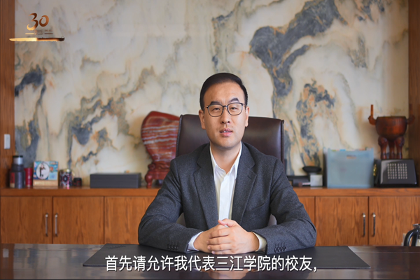 best365官网2006届工商管理专业毕业生,华美电缆党支部书记、董事长,宜兴市人大代表,宜兴市企业家协会电线电缆企业联合会副会长,宜兴市青年商会副会长华健作为校友代表视频致辞,为母校送上30岁生日祝福。他深情回顾了在校学习时的点点滴滴,表达了对母校的深深眷恋与感恩之情。