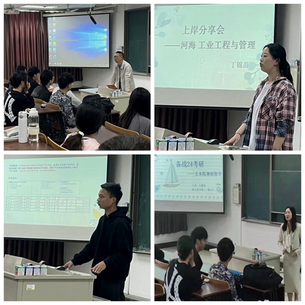 2023考研录取到华北水利水电大学土木水利专业的李帅兵同学、录取到河海大学工业工程与管理的丁锦苗梁文同学分别给在场同学分享了他们自己的择校经验和复习规划。他们建议学弟学妹们在当前阶段可以多渠道了解自己报考院校的情况,在复习备考中英语要重视词汇基础和各科真题、夯实基础之后加强各科答题技巧。同时,两位同学还无偿分享了自己复习的资料、平台来源。